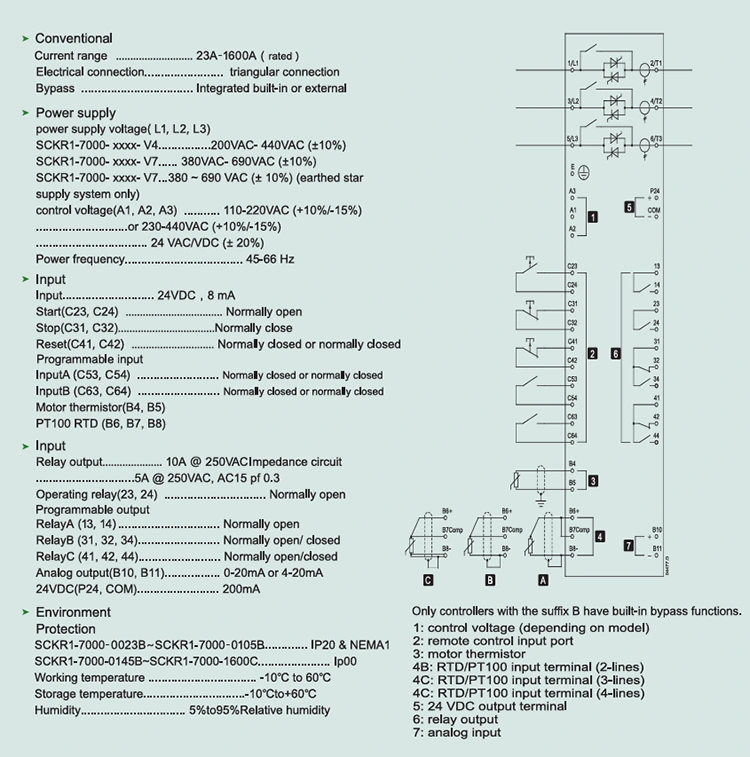 संचार संचार टर्मिन को एक सेट, डिजिटल इनपुट टर्मिनलको एक सेट, एनालग आउटपुट, एक प्रोग्रामिबल रिजपेशन, मोटर थर्मिस्टोर टर्मिनलहरू र pt100 तापमान टर्मिनलहरू।